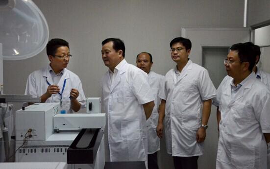 永州市委常委、常務副市長易佳良(左二)在了解公司的研發情況