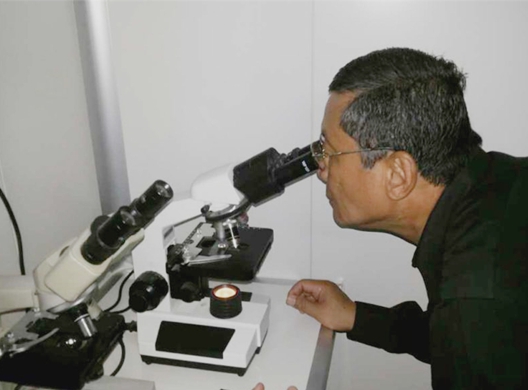 柬埔寨馬德望省省長CHAN SOPOL在旺康檸檬酸廠菌種室用顯微鏡觀察菌種