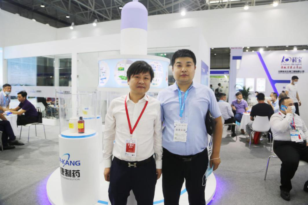 哈藥集團(tuán)招標(biāo)采購(gòu)部副總監(jiān)劉湘明(右)做客公司展位