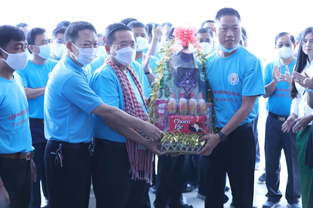 2022年5月5日,柬埔寨馬德望省省長(zhǎng)Sok Lu閣下攜省政府領(lǐng)導(dǎo)、各廳局負(fù)責(zé)人蒞臨湖南爾康制藥股份有限公司的柬埔寨產(chǎn)業(yè)園區(qū)考察,并與爾康制藥柬埔寨公司員工、當(dāng)?shù)貎?yōu)秀學(xué)生代表共慶“五一”國(guó)際勞動(dòng)節(jié)。
